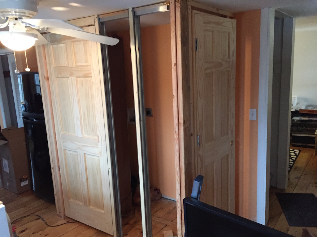 One of the first projects I did when I purchased the house was to stack the washer and dryer and build a laundry closet that would allow me to tuck the washer and dryer away. This also gave me the opportunity to build a coat closet next to the front door (the existing closet was on the other side of the kitchen).