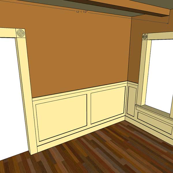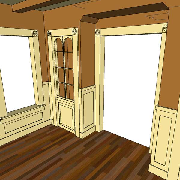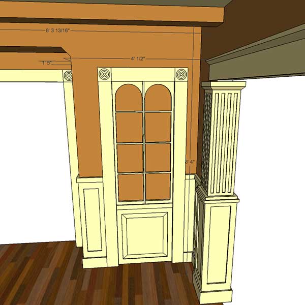 We also added bead-board and a chair rail around the perimeter of the room. The last element we added was ornamental columns between the dining room and living room.
