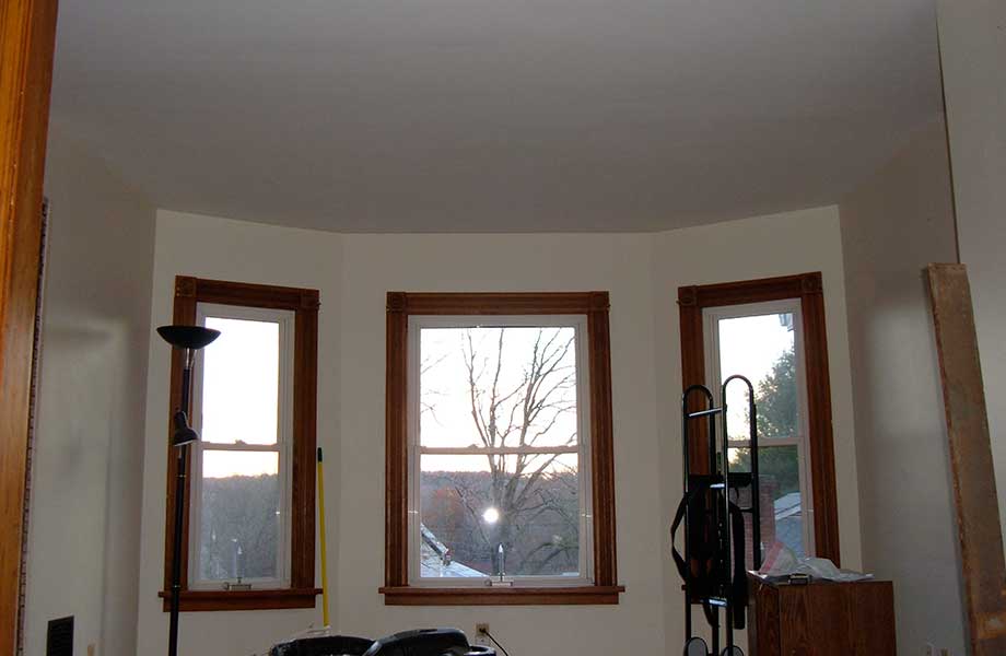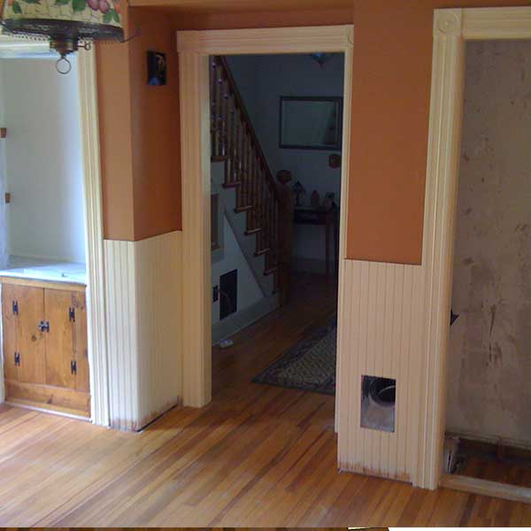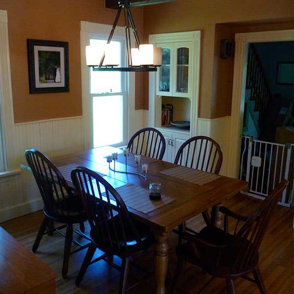 The dining room is central to the rest of the house, and the wallpaper was probably the primary reasons for renovating the room. We spent a number of hours stripping off that wallpaper, and even afterwords I needed to skimcoat and sand the walls to get them ready for paint.