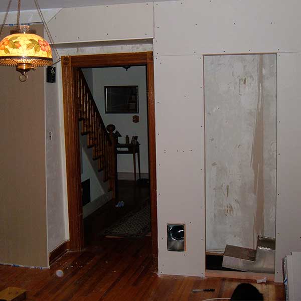 Of course I also wanted a proper place to put a TV. One of the walls was uneven because the chimney intersects the wall. I reworked the wall to include a spot for the TV to set into the wall.