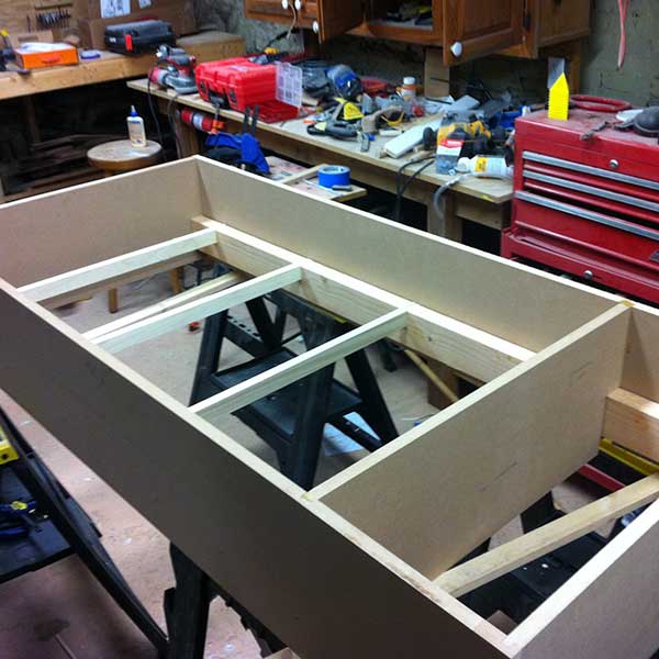 MDF is messy (and dangerous). I’ve used it several times in the past, and it’s a convenient medium to work with. I bought a workshop air filter before this project (knowing that I’d be cutting a lot of MDF), but everything in the workshop had a coating of MDF when I was done. I did many rough cuts outside, but I should have done all of the cutting outside.