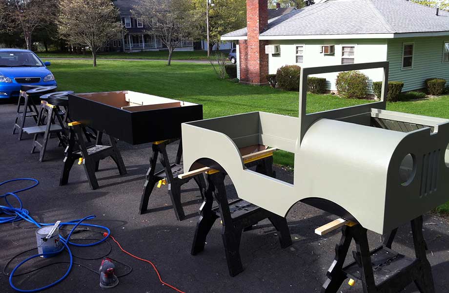 I made extensive use of guides and a few jigs. With a flush trim bit I could clamp a guide to my material and make replicas of parts. I was able to build both sized to be almost identical with the flush trim bit.